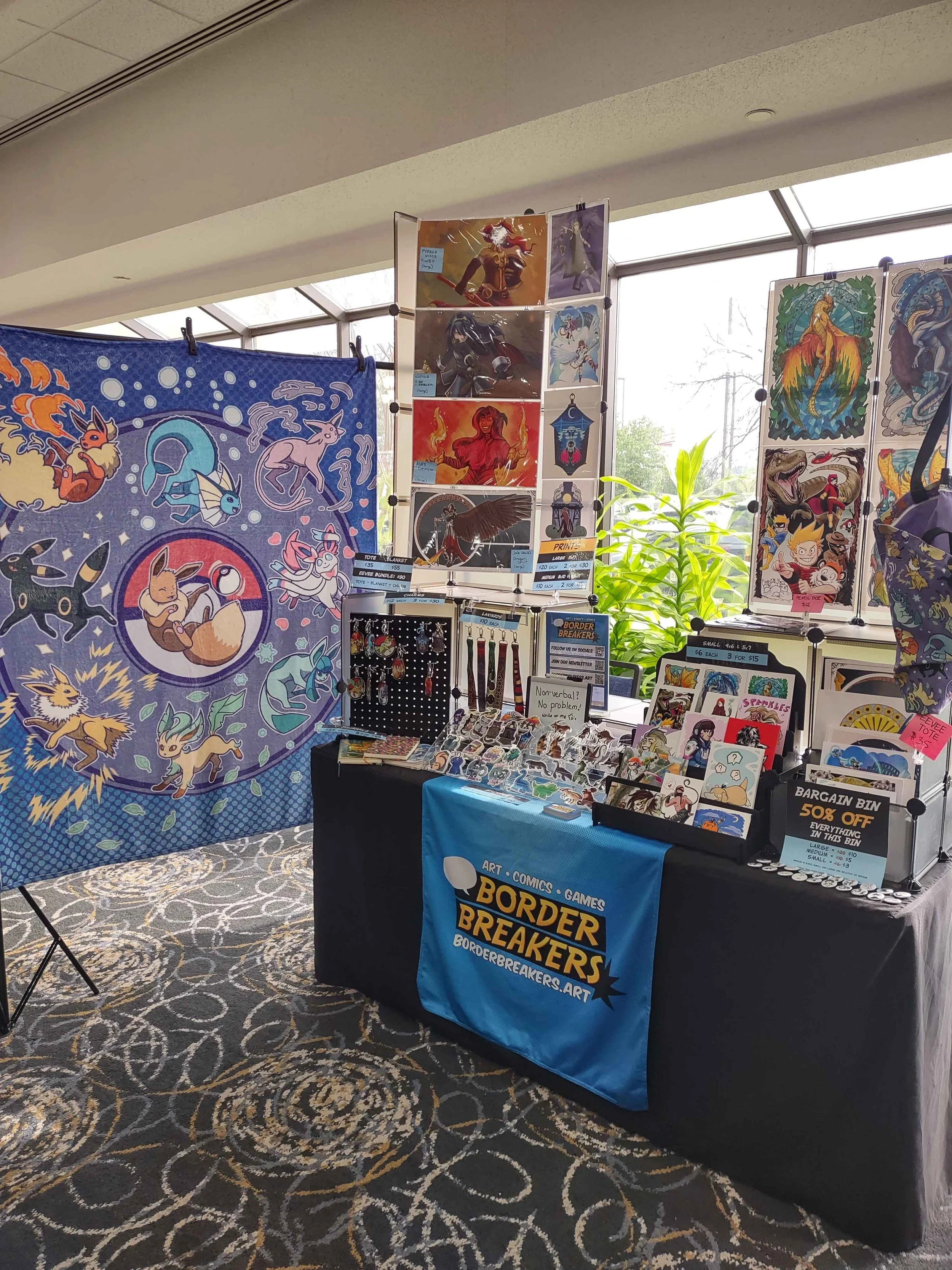 This was a mixed market with vendors spread out into a couple different spaces but all on one floor. There was signage so it wasn’t too hard for folks to find everyone which was good. We were in the main hallway right by the entrance, so we got a good sense of how busy it would be throughout the day. There was a line out the front doors, especially during VIP hour which ran from 11 am to noon. We were maybe 1 of 3 convention artists, while most other vendors were resellers or craftspeople.